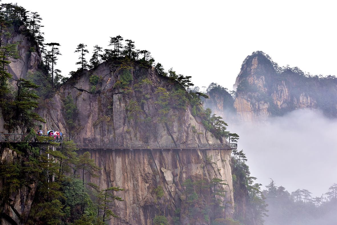 首站,浙江大明山。蒙蒙細雨,讓我們見識到了大明山的獨特風采:山頂雨霧繚繞,懸崖雄偉壯麗,瀑布飛流直下,樹木郁郁蔥蔥,此派景象如詩如畫,如置身仙境。大明山山脈綿長,越往上走空氣越是寒冷,大家相互鼓勵,相互幫助,誰也不曾有過放棄的念頭,最終在大家的不懈努力下如愿登上了山頂,大明山的秀麗景色盡收眼底。